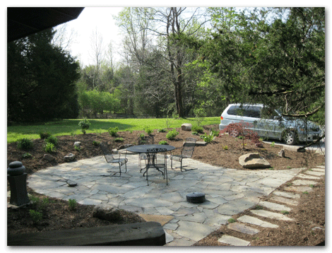 Remember the clearing of woods article in March?  Well, this homeowner told me to keep going with the most functional part of her outside space.  So we designed and executed the plan for the driveway and outside terrace and garden.