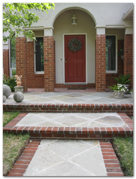 This front walk is mortared because the slope of the land creates heavy erosion during a rain. Any dry lay walkway would wash away.