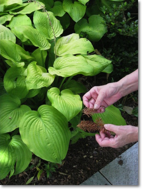 This client gave me a tip on how to prevent slug damage to tender perennials particularly her hostas.