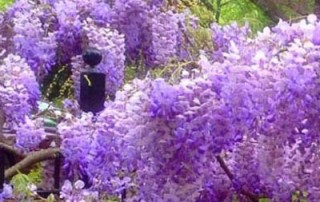One of my favorite spring treats is to see the graceful draping of the purple, blue and white wisteria blooms along fences, arbors, corners of houses and even hanging from other trees.