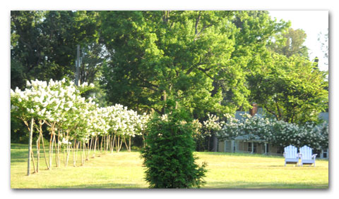 We decided on white Natchez crape myrtles because in our experience: