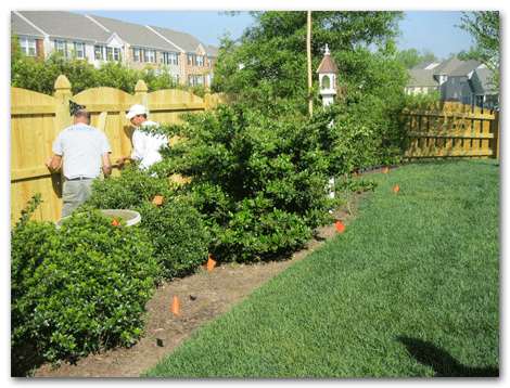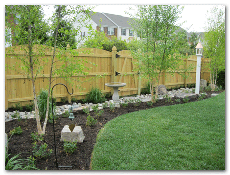 This yard had a soggy ditch and a stop short vista in the back yard. Our design and installation of river birch trees, hypericum ground cover, and carefully placed river rocks and boulders serves three purposes. It helps rain water run off the property quickly; provides a natural wall for privacy; and transports you to a New England style landscape with Virginia spring weather.