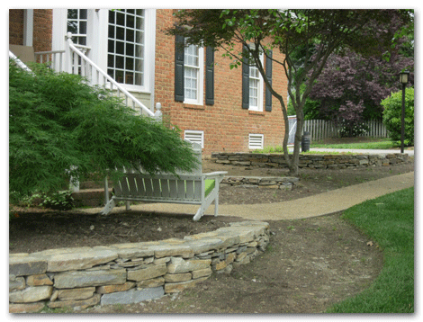 Here the clients and I carefully staked out and designed this minuet of dry stack walls with hidden mortar. Of course, our crew did the artistic hands on creation.