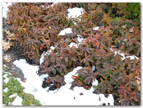 Autumn Fern– If had had one perennial to bring to another planet, it would be this one.  This picture shows it bent under the weight of the snow.  It perked up after the snow melt and retains its green foliage. In the spring we will cut it back to the ground.  The new foliage will come up a burnish red then turn to green.