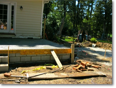 - Creating the base of the raised deck with cemented cinderblock and 30 tons of gravel.